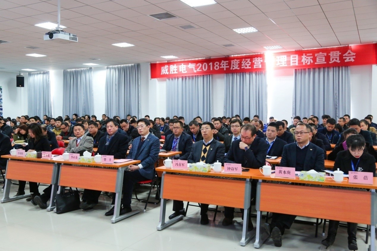2018年經(jīng)營管理目標(biāo)宣貫會共三個階段:首先,會議宣讀了2018年威勝電氣總裁任命、電氣經(jīng)營管理團隊和銷售負責(zé)人的人事任命。