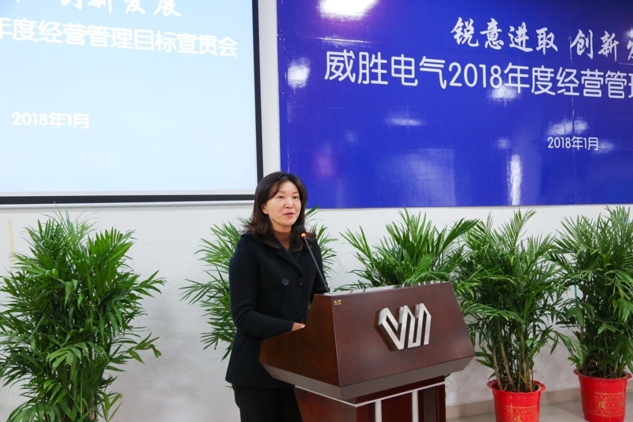 2018年1月8日下午,以“銳意進取,創(chuàng)新發(fā)展”為主題的威勝電氣2018年經(jīng)營管理目標(biāo)宣貫會在電氣產(chǎn)業(yè)園會議中心培訓(xùn)室順利召開。控股董事會吉主席、控股本部、威勝電氣董事會以及經(jīng)營管理團隊的各位領(lǐng)導(dǎo)、威勝電氣員工代表共計260余人參加了本次會議,會議由威勝電氣行政人事總監(jiān)鄧超艷女士主持。